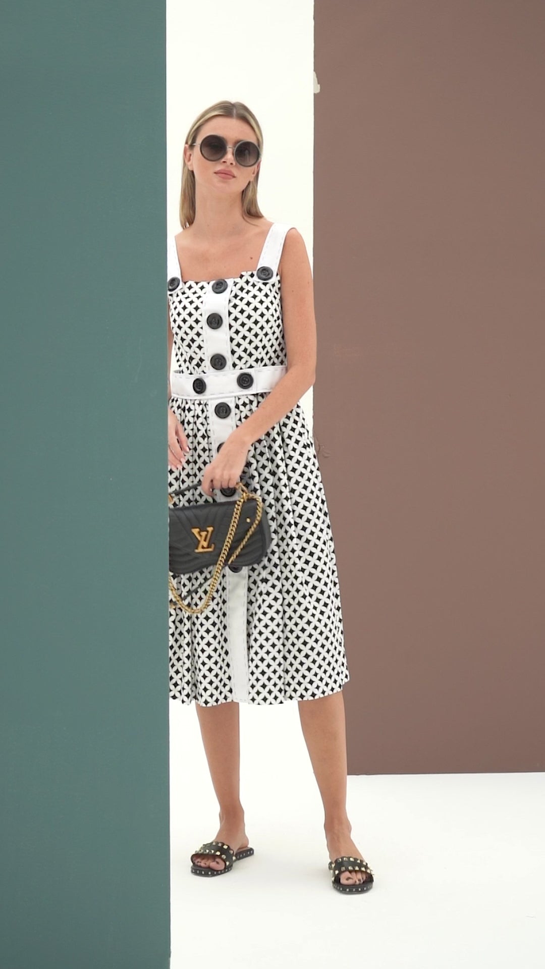 This black and white dress is a special garment that exudes boldness and strength. It features a striking combination of black and white colors, creating a visually impactful look. With good length, it provides a balanced and sophisticated appearance. The dress is designed to enhance the wearer's confidence and highlight their figure. It is a powerful ensemble that commands attention and makes a lasting impression.