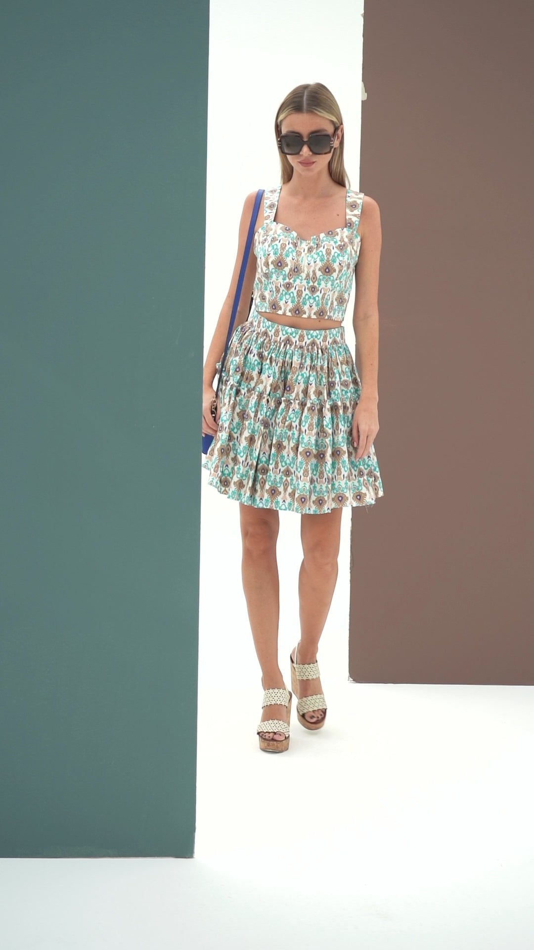 Make a stylish statement with our turquoise two-piece set. This ensemble features a chic crop top and matching skirt, perfect for adding a pop of color to your outfit. The refreshing turquoise hue exudes a vibrant energy, catching the eye and turning heads. The comfortable fit of the crop top and skirt ensures a relaxed and flattering silhouette, allowing for easy movement. Whether you're beach-bound or taking a leisurely walk, this turquoise set will give you a confident and positive vibe. Embrace the beauty of this captivating ensemble and step out in style.